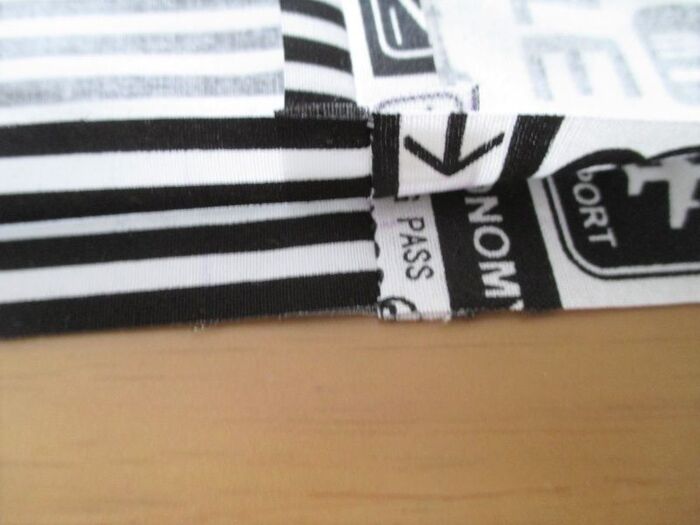 裏地を中に入れ、表地を1~2mm位裏地側にずらしてアイロンで折ります。