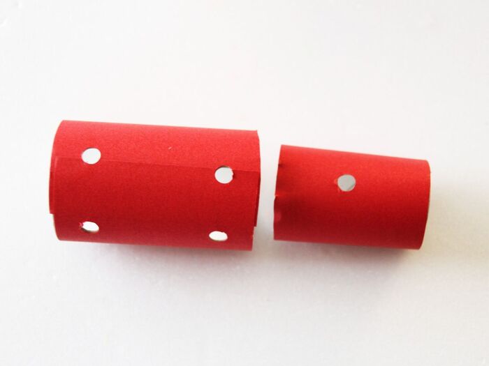 (長い芯に足用の穴4箇所、短い芯の中央より少し手前に1箇所です)