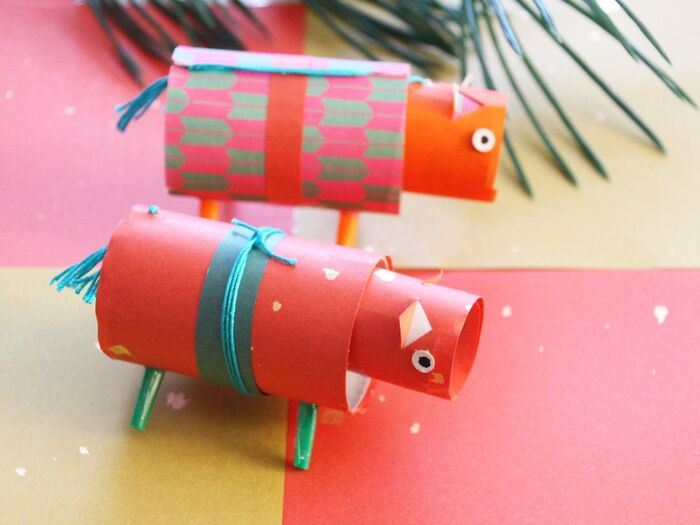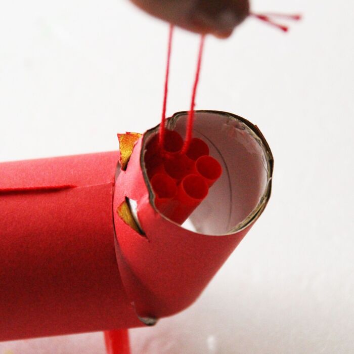 ストローの重を頭に入れ糸を通して軽く結び、頭がゆらゆらするように筒を調整したら固く結ぶ