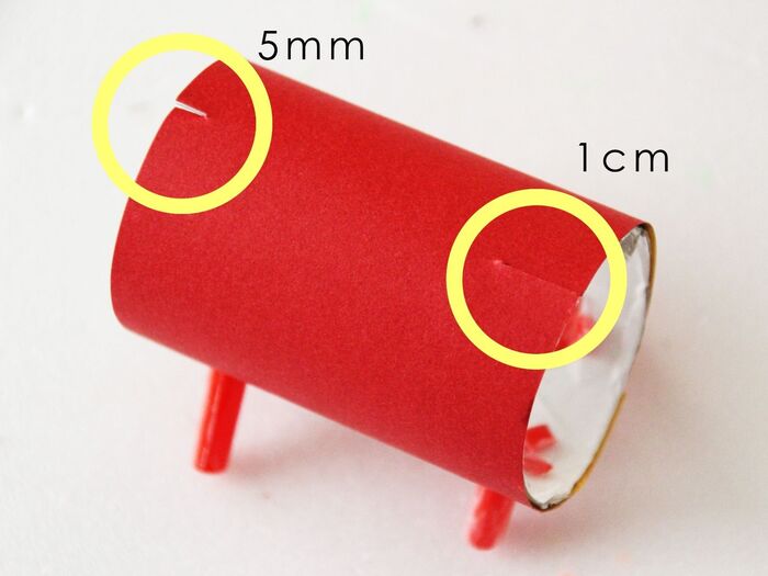 だいたい5mm〜1cmくらいの切り込みを両端に2箇所入れる