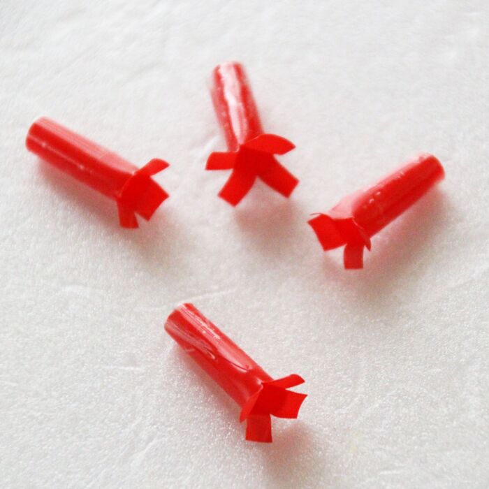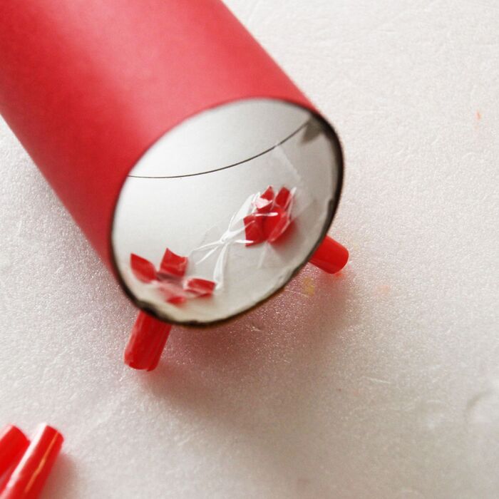足パーツを長い芯の穴4箇所に内側から差し込み、テープで止める