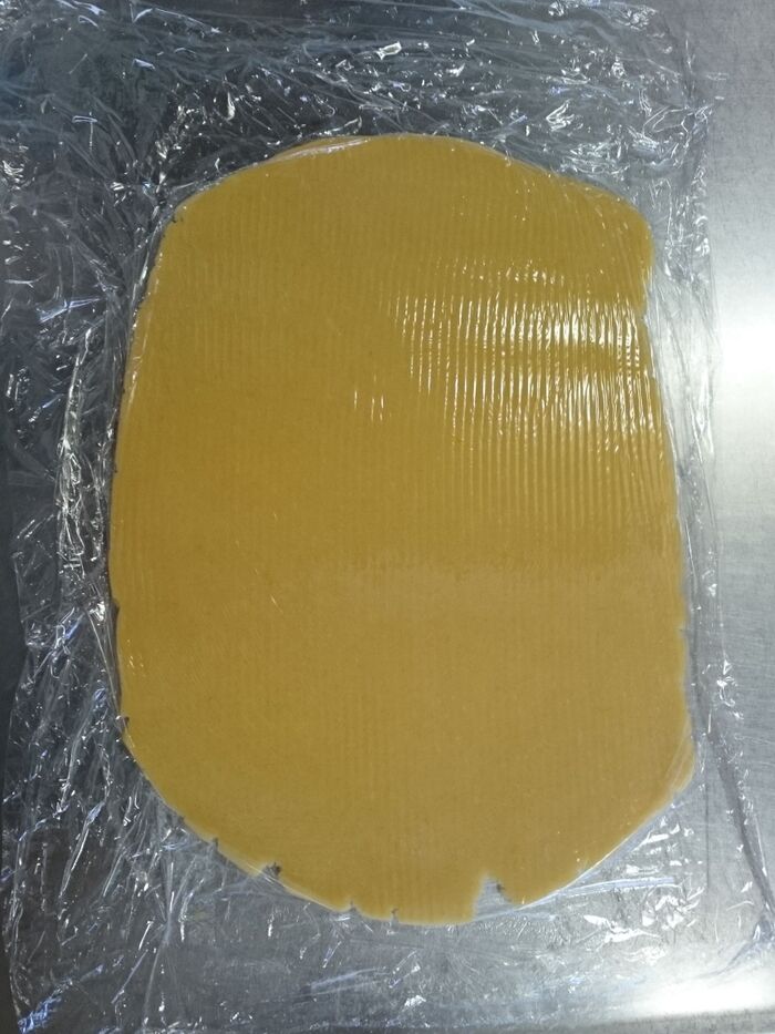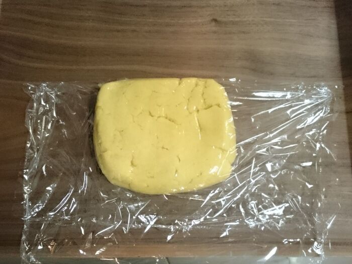 生地をとりだして、少し柔らかくなったのを確認したらラップを広げる。