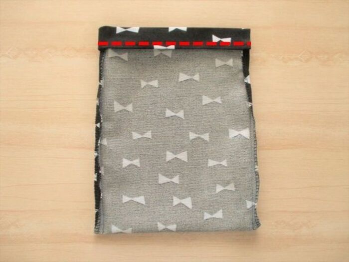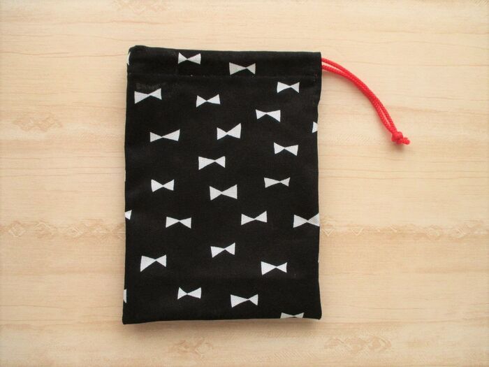別ページにてご紹介している『簡単!!基本の巾着の作り方【両ひもタイプ】』と生地の大きさも出来上がりサイズも一緒です。