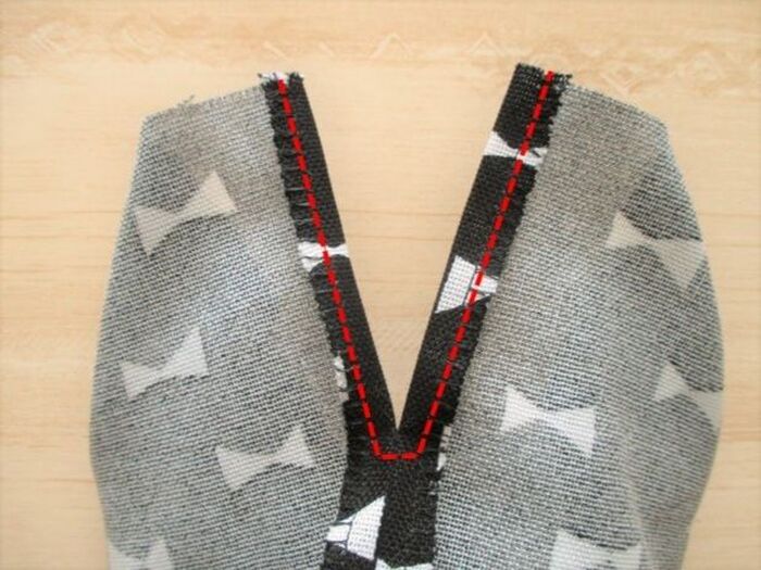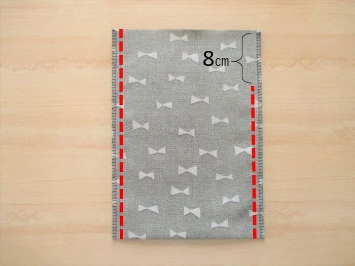 生地を中表に合わせ、片方は上から8cmを開けて縫います。