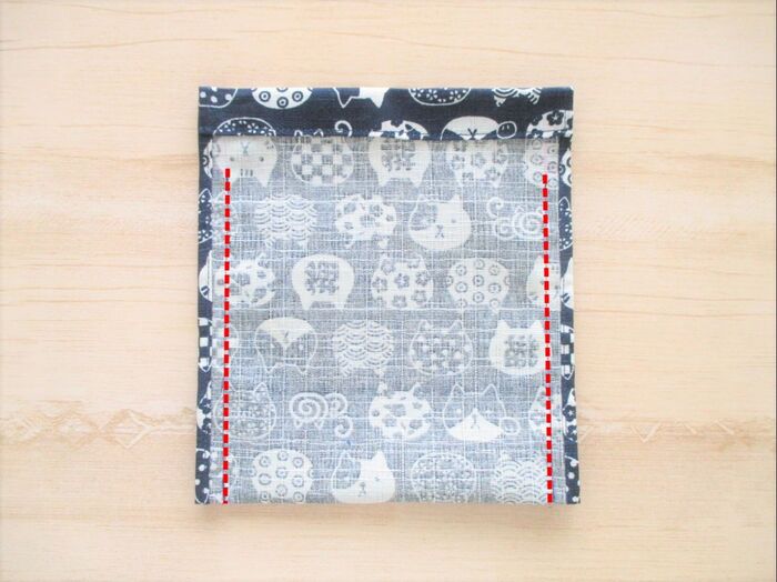 中表に半分に折り、縫い止まりまで縫います。