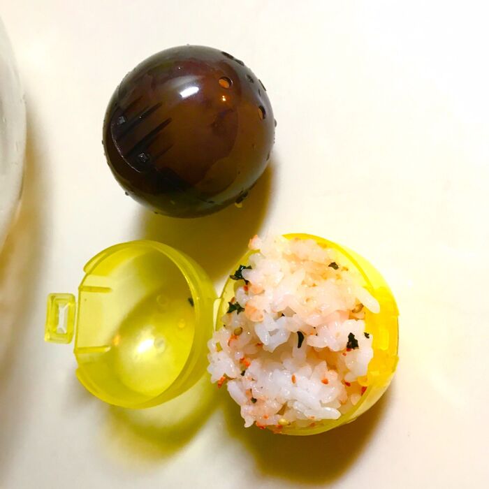 ③カプセルを開ければ丸いおにぎりの出来上がりです。