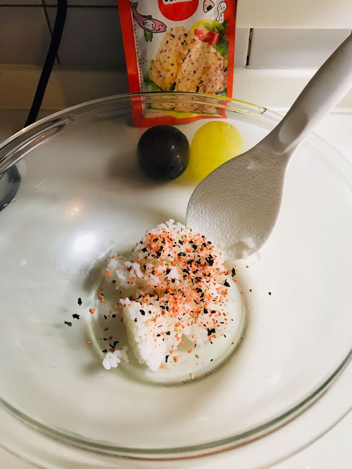 ①ご飯に混ぜるふりかけみたいなのを混ぜます。