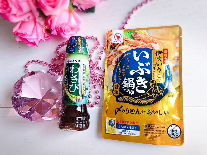 いぶき鍋つゆは化学調味料無添加で1人前4袋入り♡わさびドレッシングは伊豆産本わさび入り♡