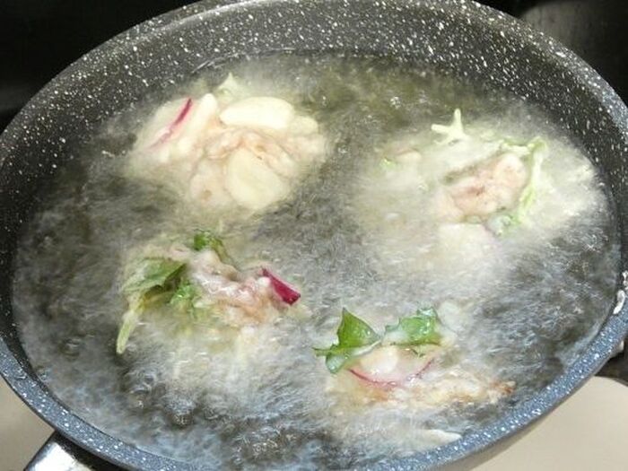衣に氷を入れるとサクサクになります。