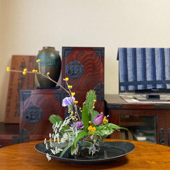 毎年年末はこうして娘ちゃんとおせち作りやいけばなをしている私。