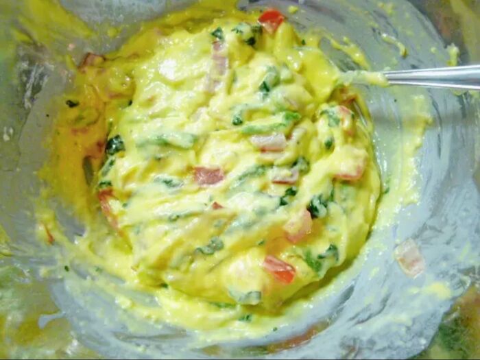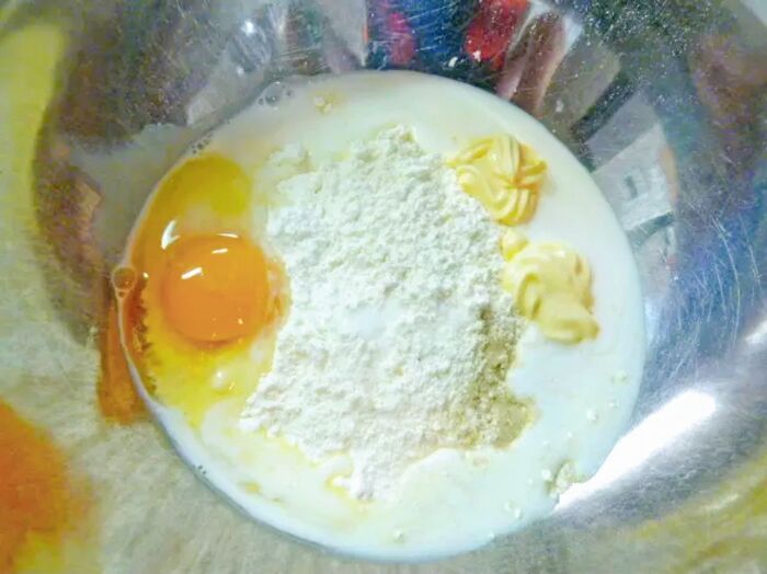 マヨネーズはホットケーキミックスと牛乳(水分)が混ざってしまう前に加えたいので全部一緒に混ぜます。