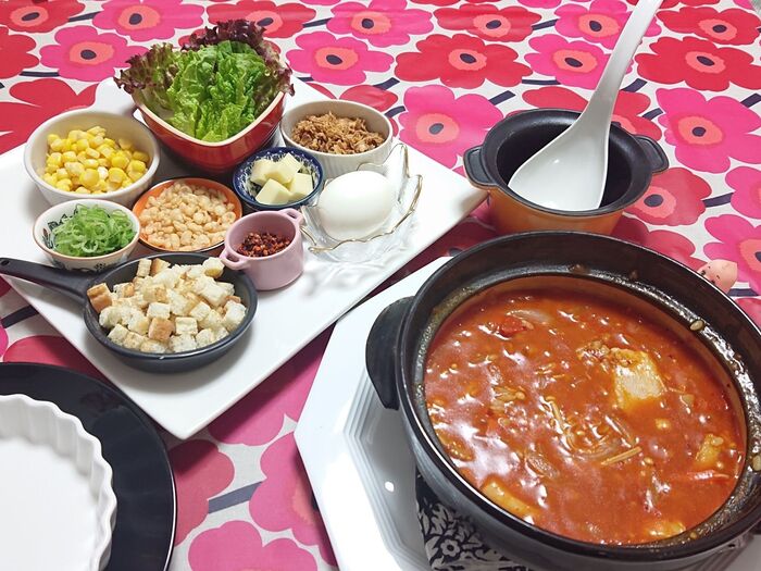 コーン、天かす、食べるラー油、青ネギ、クルトン