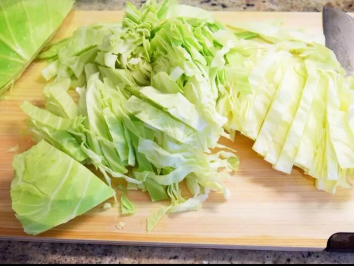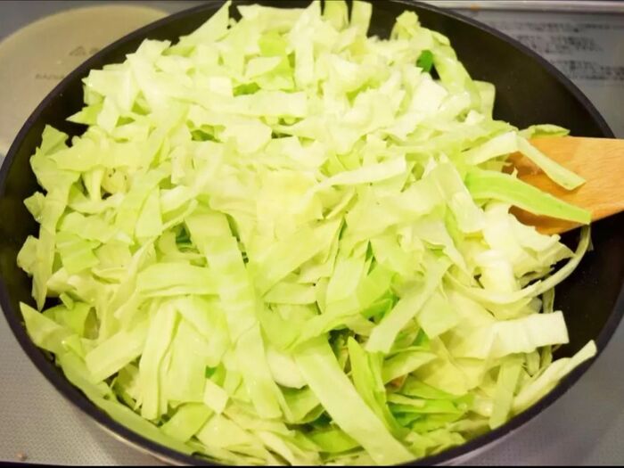キャベツは1センチ幅程度で食べやすい長さに切る