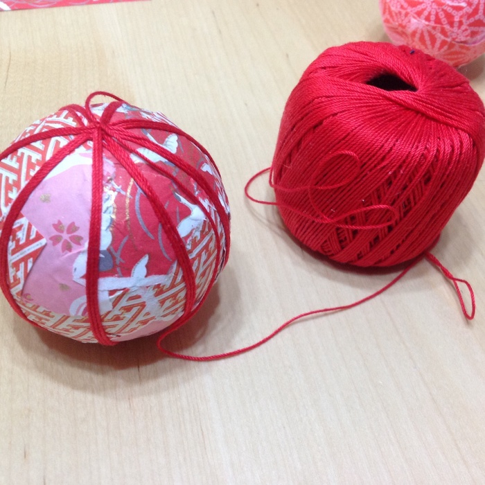 紐を巻いてあげると、より鞠っぽくなります。
