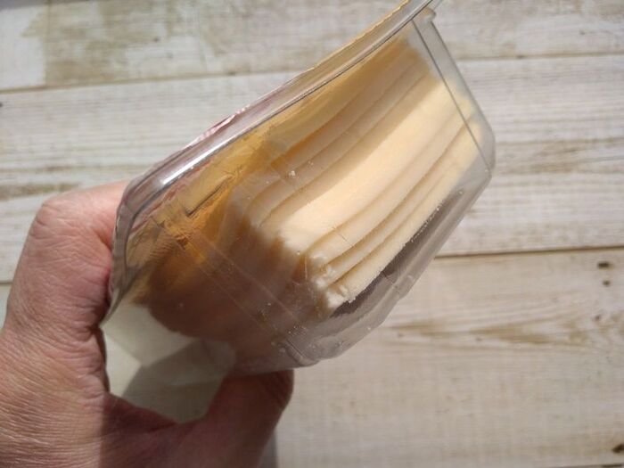 横から見てみると、スライスされたチーズが2列になってギッシリと詰まっています。