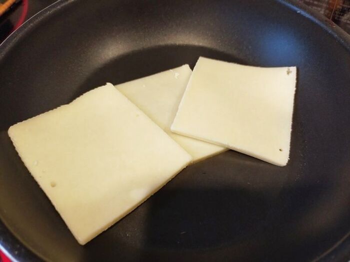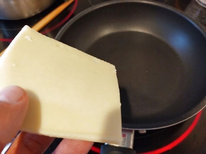まずは、フライパンを加熱してラクレットチーズをいれていきます。