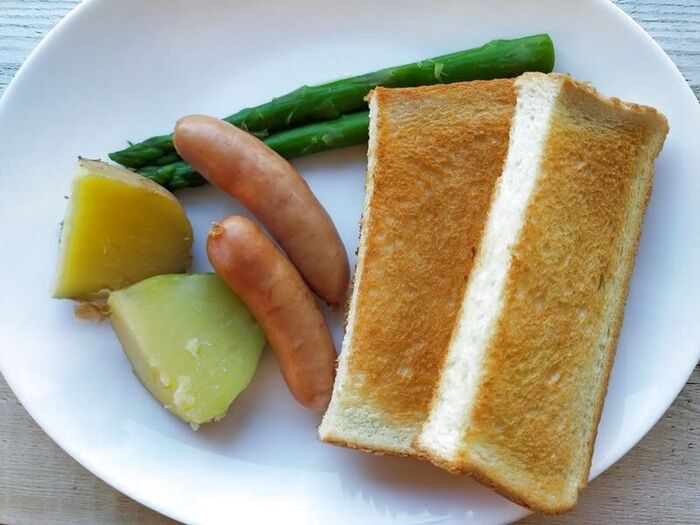 今回は朝食用に、ボイルしたジャガイモとウインナー、そしてコストコの冷凍食品コーナーで人気のベジーマリアのアスパラガスを用意しました。