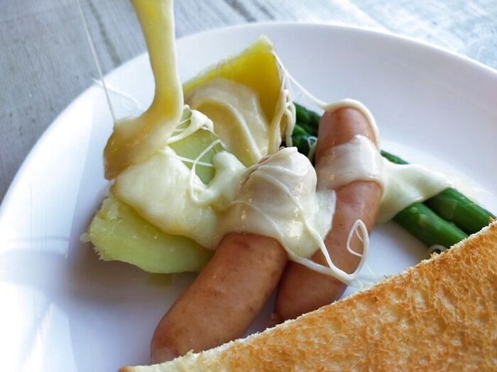 ラクレットチーズって、本格的なものはレストランに行って、丸い大きなチーズを半分にカットしたカタマリを溶かして食べるイメージなので、どちらかというと高級メニューですよね。
