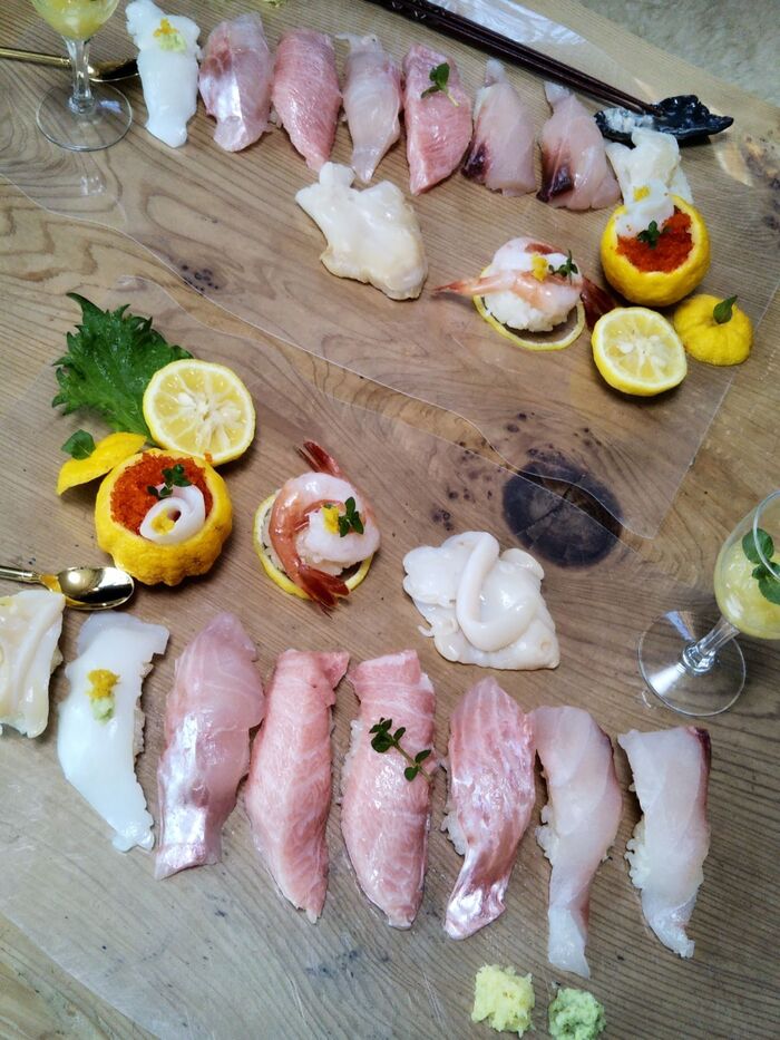 ※ねっとりした食感のコウイカの握り寿司は、ゆずを絞って頂くと美味しいです!