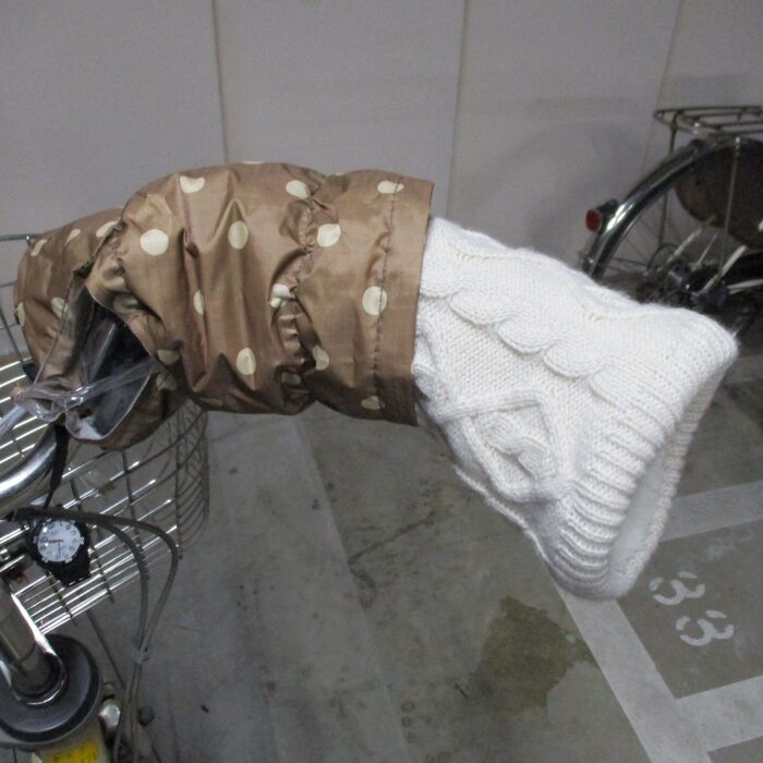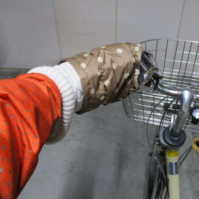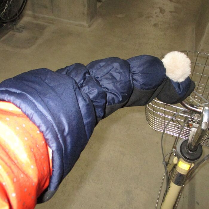市販のハンドルカバーだと短いので、手首までは収まらず寒い思いをしていましたが!