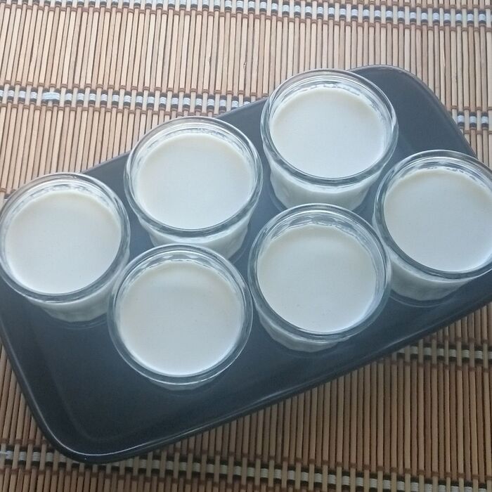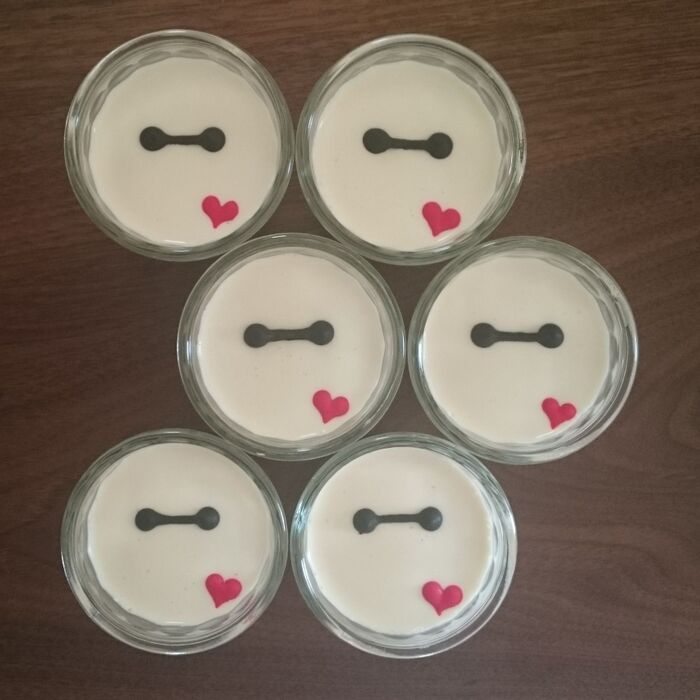 豆乳プリンが冷やし固まったら、チョコパーツをのせて完成!