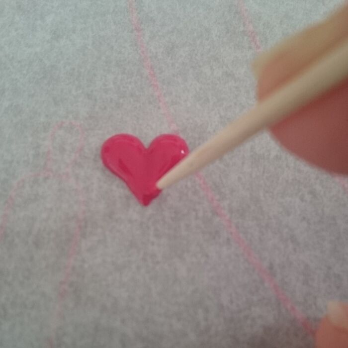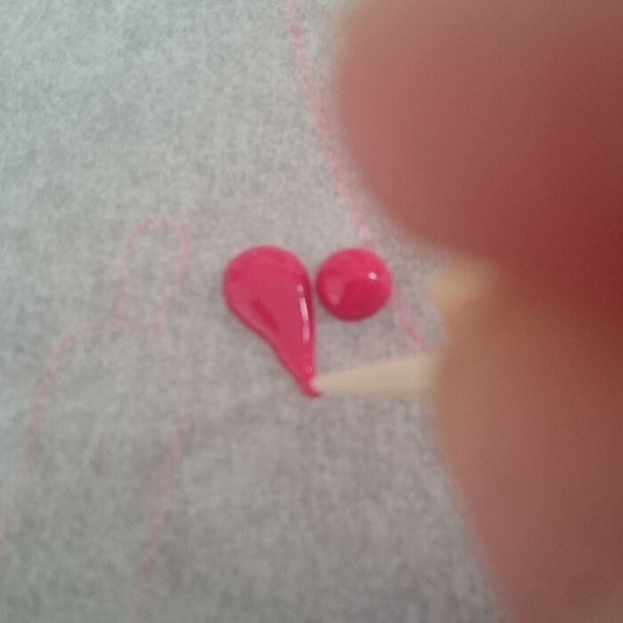 楊枝で点の真ん中からVの字になるように線をひきます。
