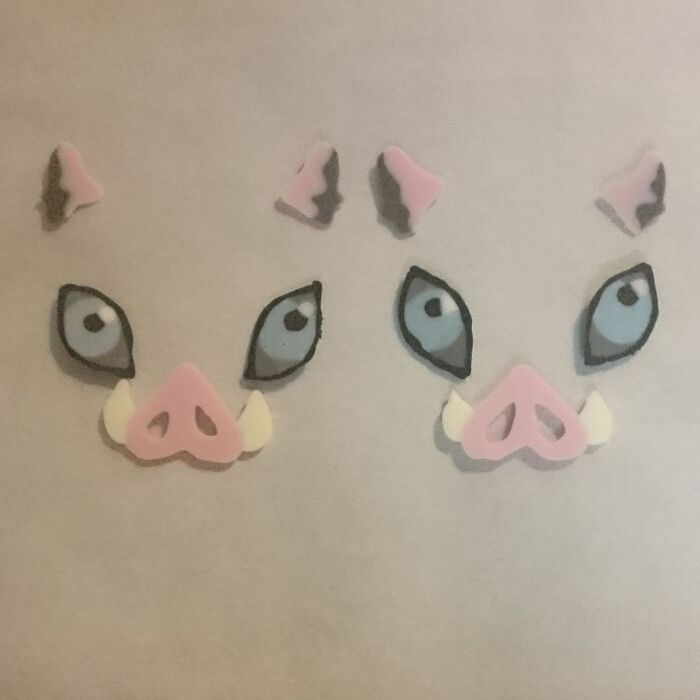 鼻パーツはピンクのチョコペンで逆さまハートを書いて、牙は白のチョコペンで点を描いたあと、楊枝で伸ばすと描きやすいです。