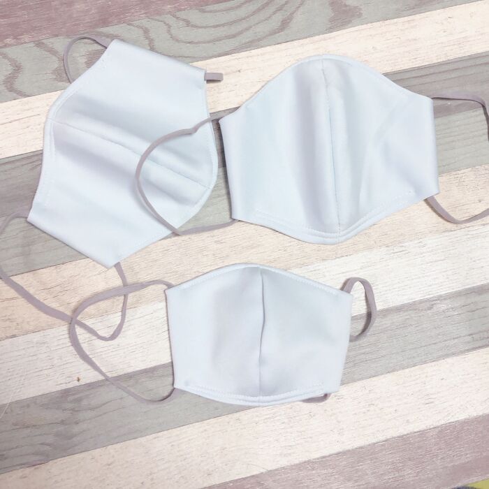 デザインにもよりますが、一枚で子供用のマスク3〜4枚、大人用だとギリギリ3枚作れました。