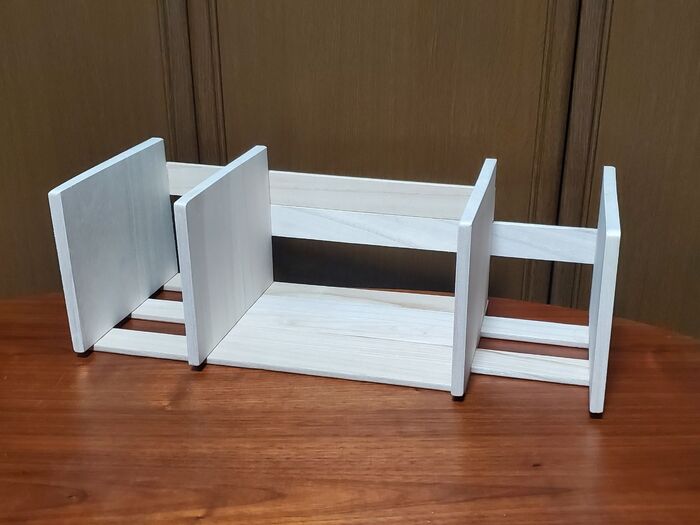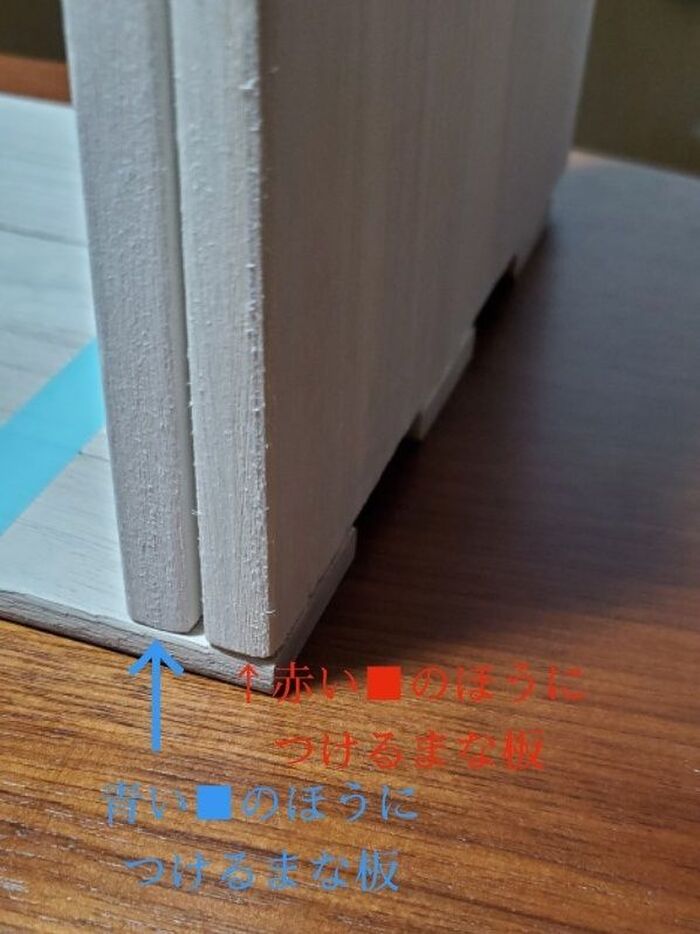 1~2mm隙間をあけて、写真のように木材同士をずらしてボンドで仮固定します。