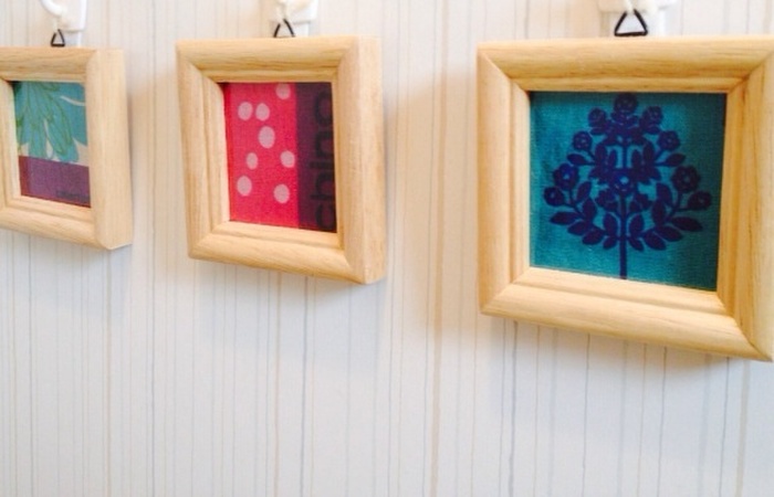 もとは小さな押し花が入ったミニフレームでした。押し花が色あせてしまったので、普段はこのように布を入れて飾っています。