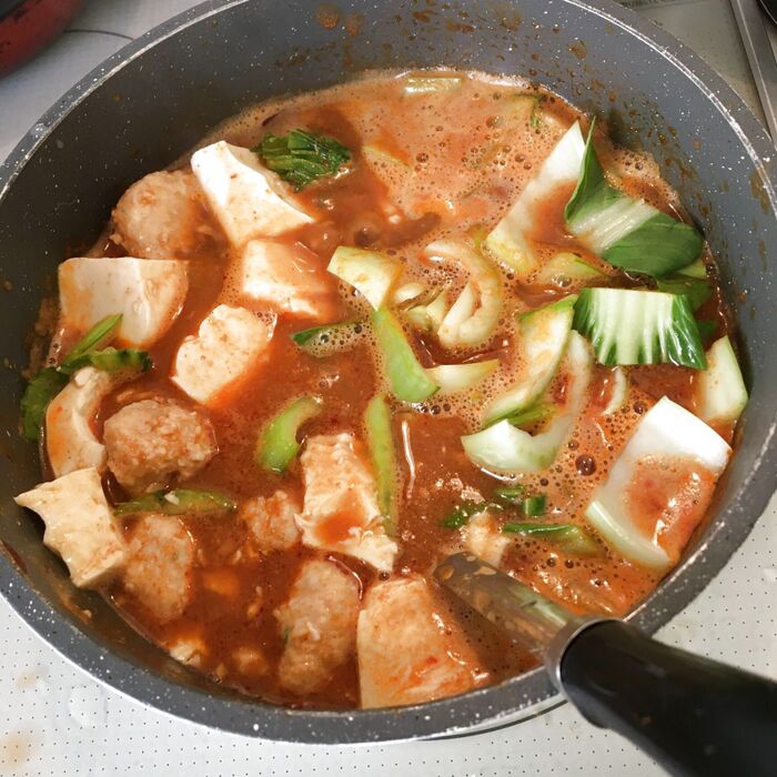 豆腐、肉(レシピ上はひき肉だけどつみれに変更)、