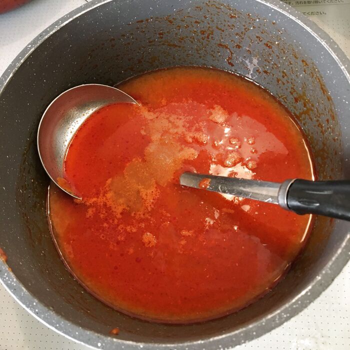 スープにお水を加えてひと煮立ちさせます。