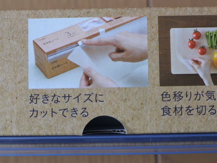 24㎝×3m幅のまな板シートは、好きなサイズにカットできるから、まな板に合わせて、用途に合わせてサイズを変えられるのも魅力的。