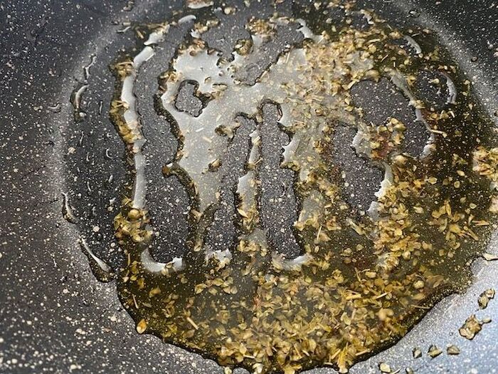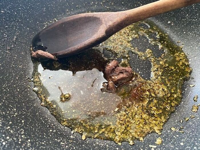 ★タイムとアンチョビは焦がさないように弱火で炒めます