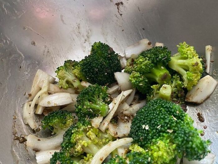 ★ブロッコリーは小房に分け水につけてしっかり水気を切らずに