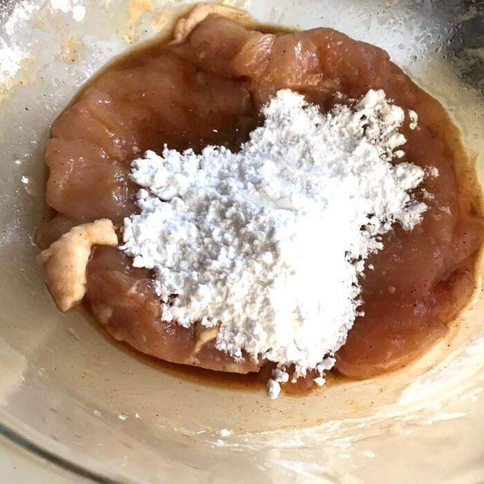 酒、砂糖、醤油を入れよくなじませます。五香粉を両面かけます。