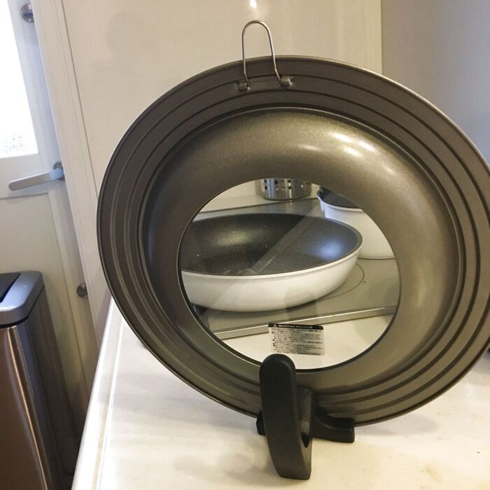 調理中、蒸し焼きなどにしている時は横に立てて置けると便利!