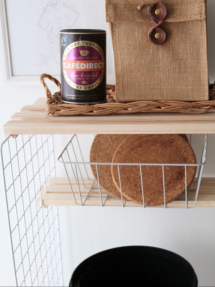 キッチン近くにちょい置き出来るスペースが欲しくて作ってみました。
