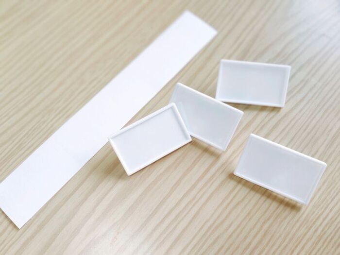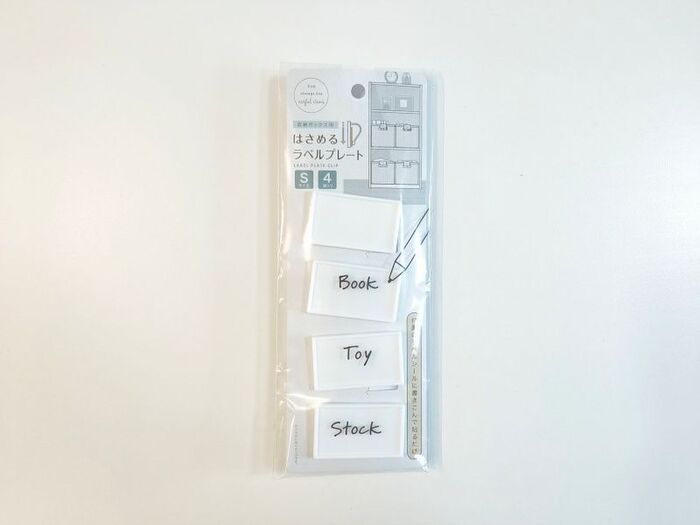 こちらは商品名の通り、収納ボックスなどに”はさんで”使うタイプのラベルプレートです