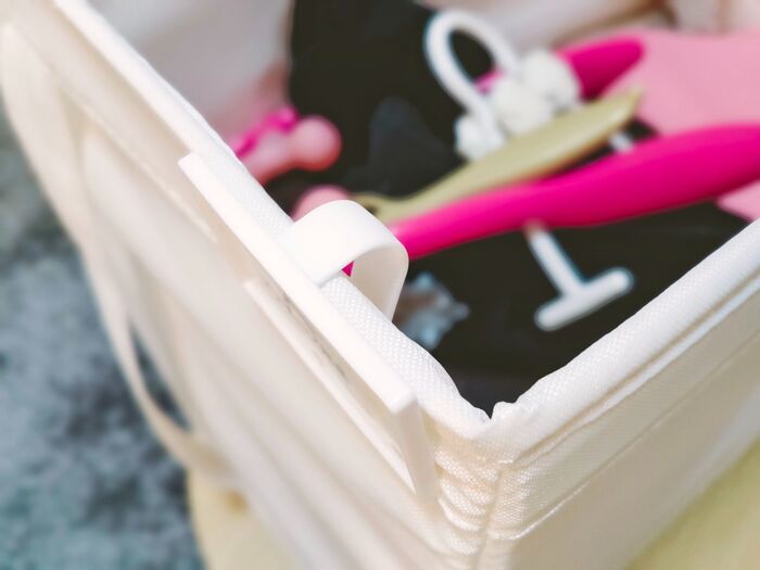 収納自体にラベルを張り付けないので、付け外しがとっても簡単な所がポイントです!