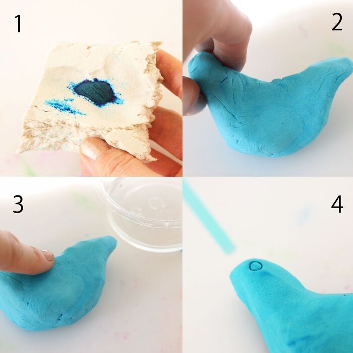 1.お好みの量のフードカラーを粘土にのせ、よくこねる
