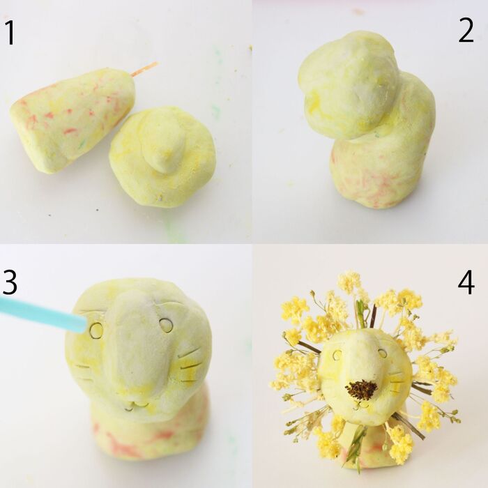 うさぎと同じくパーツ同士に芯を入れて補強してから一体化(写真2)