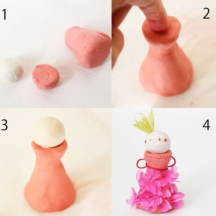 頭とドレスは芯を付けボンドを塗って接着(写真3)
