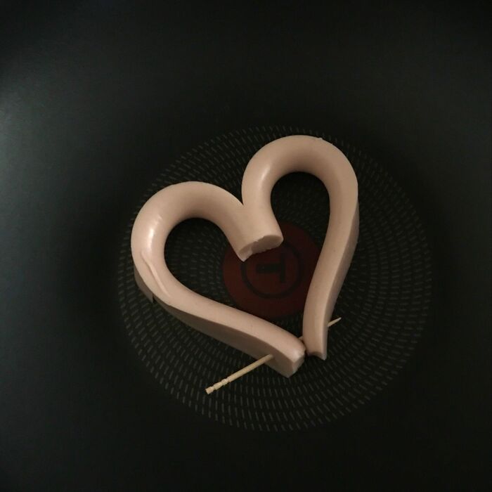 食パンをハートの型で抜き、卵・牛乳・砂糖を混ぜた液に浸し、フライパンにバターを入れ