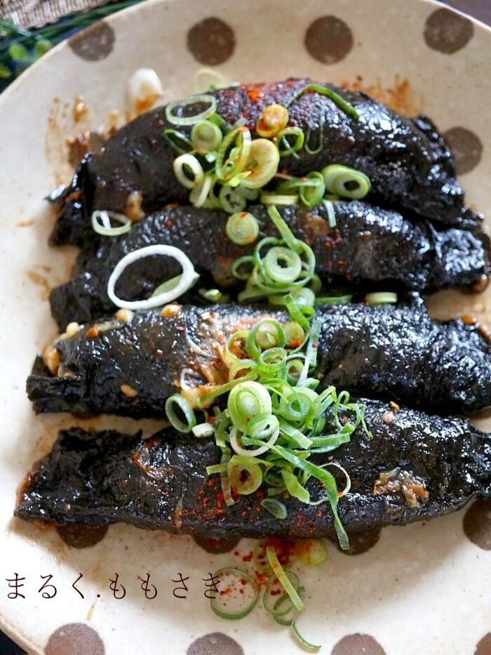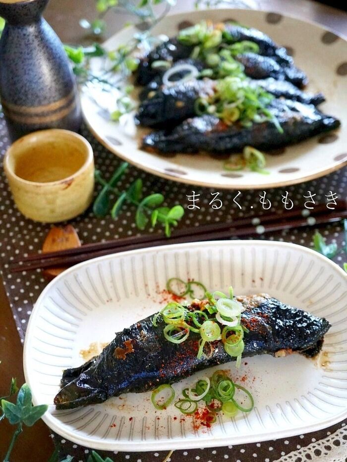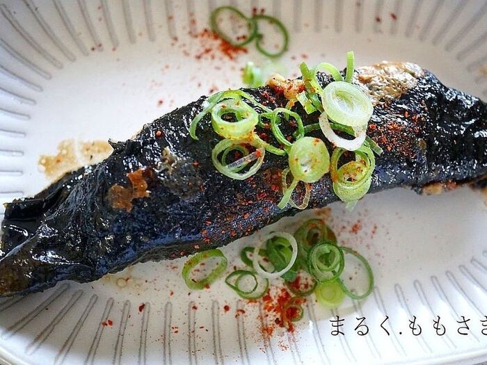 皿に盛り、上から小口切のネギと一味をお好みでかける。