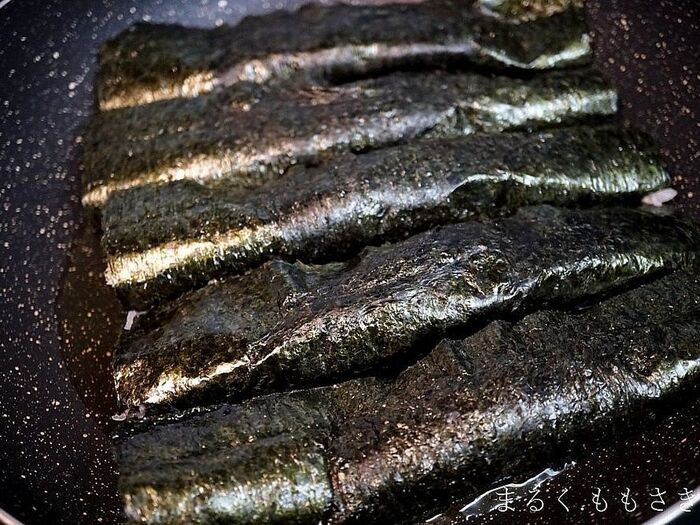 チーズが流れるのを防いでくれ、また焼くと海苔がささみの形になるので、