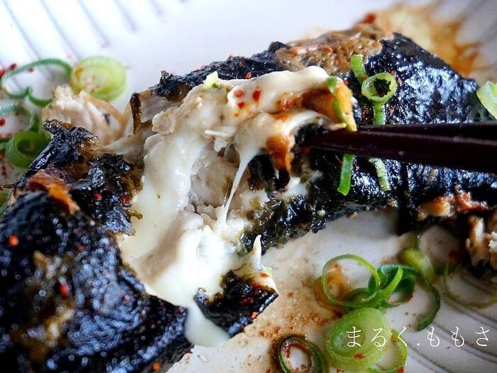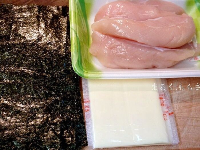 海苔の上にチーズを置いてからささみを置き焼いたり、