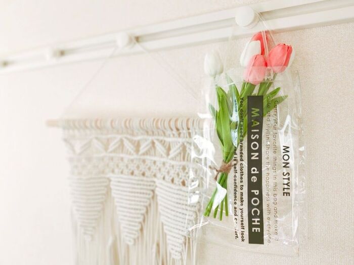 次にダイソーのクリアバッグに入れて飾ってみました