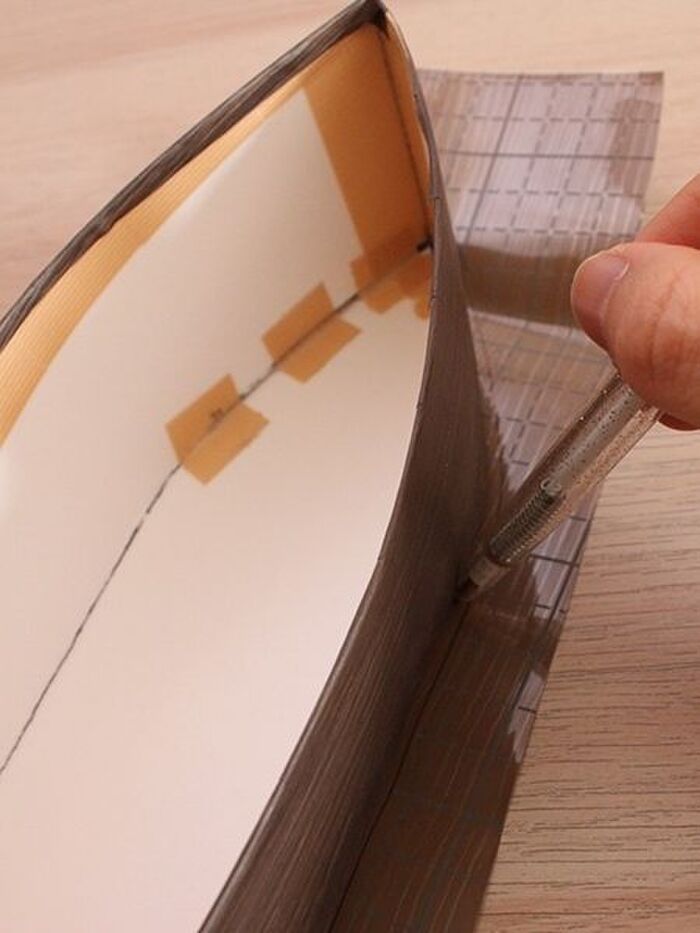 ・1cmほど大きめに切ったリメイクシートを外側から貼り、内側に折り返します。