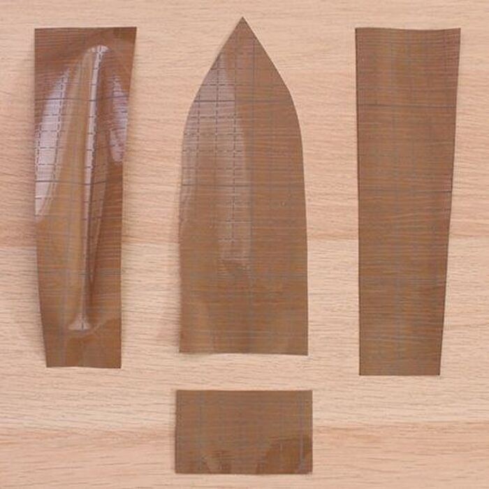 ❶リメイクシートを、コの字に曲げたパーツより1cm大きく切ります。